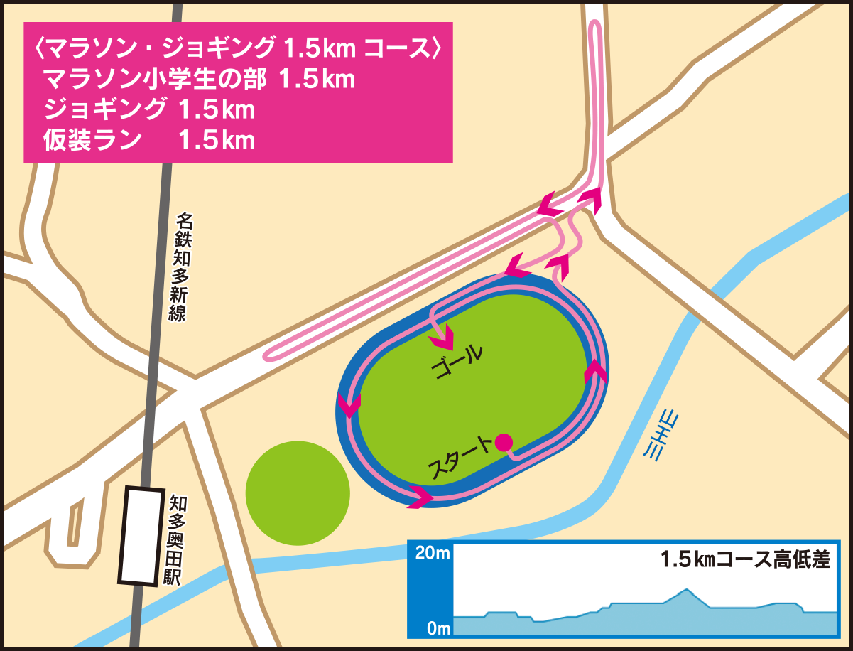 10km(一般) / 3km(中学生) / 1.5km(小学生)②ジョギングの部: